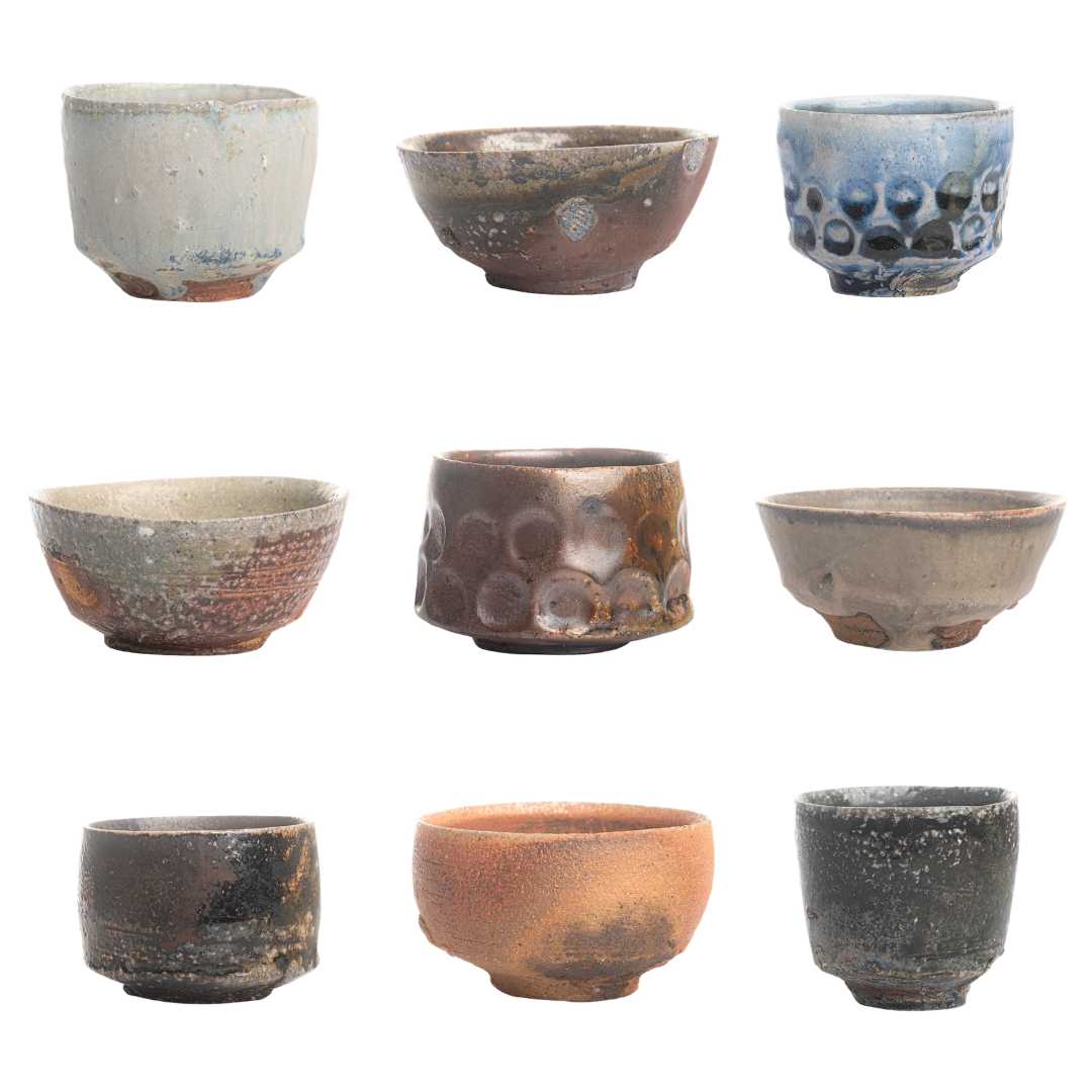 An assortment of sippers with different glazes from Andrew Sartorius.