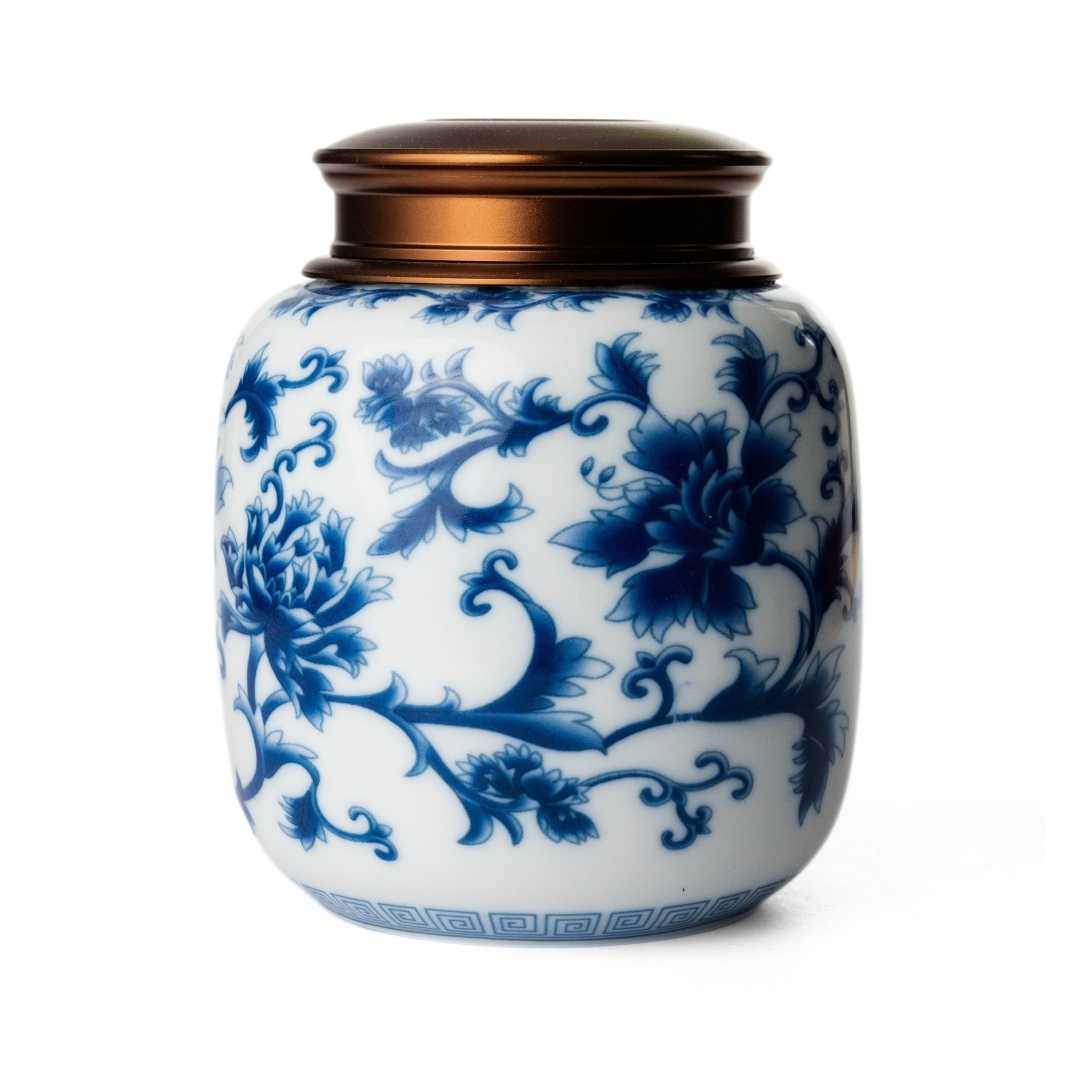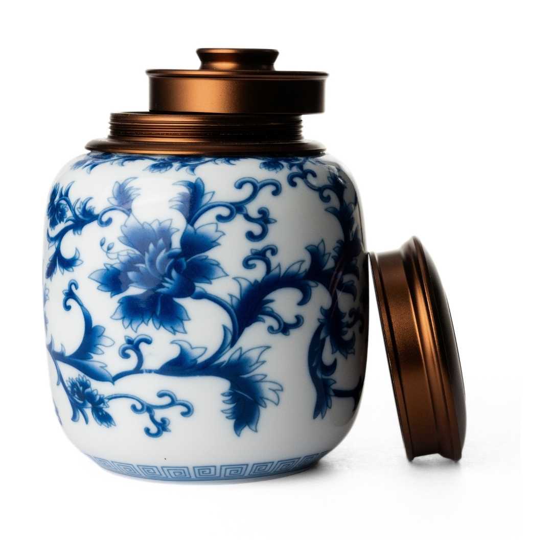 Despite the printed Qinghua, this jar is a complete work of craft. A perfectly fitting screw top lid that is satisfying in its smoothness, an inside lid to further seal the tea, it feels like we’re breaking into Fort Knox when we’re getting out our teas.