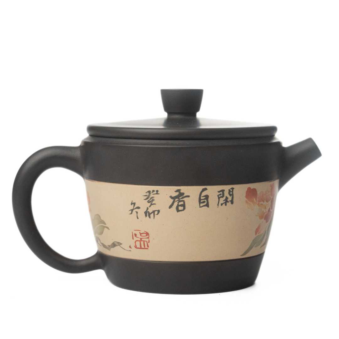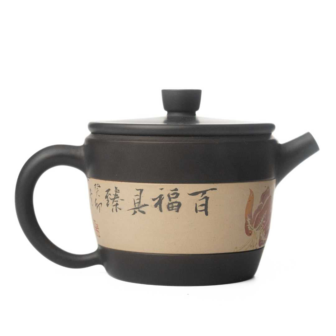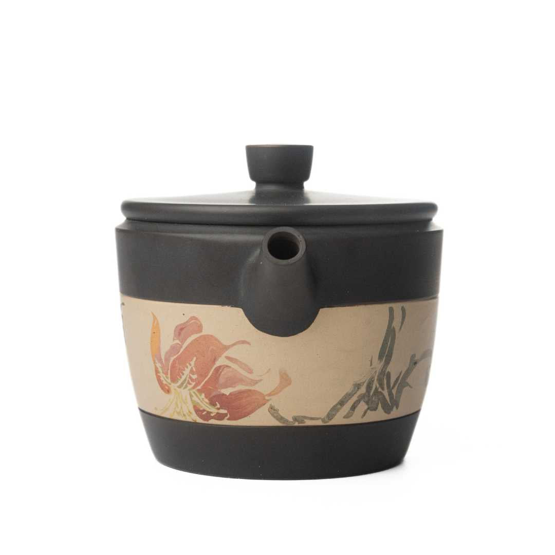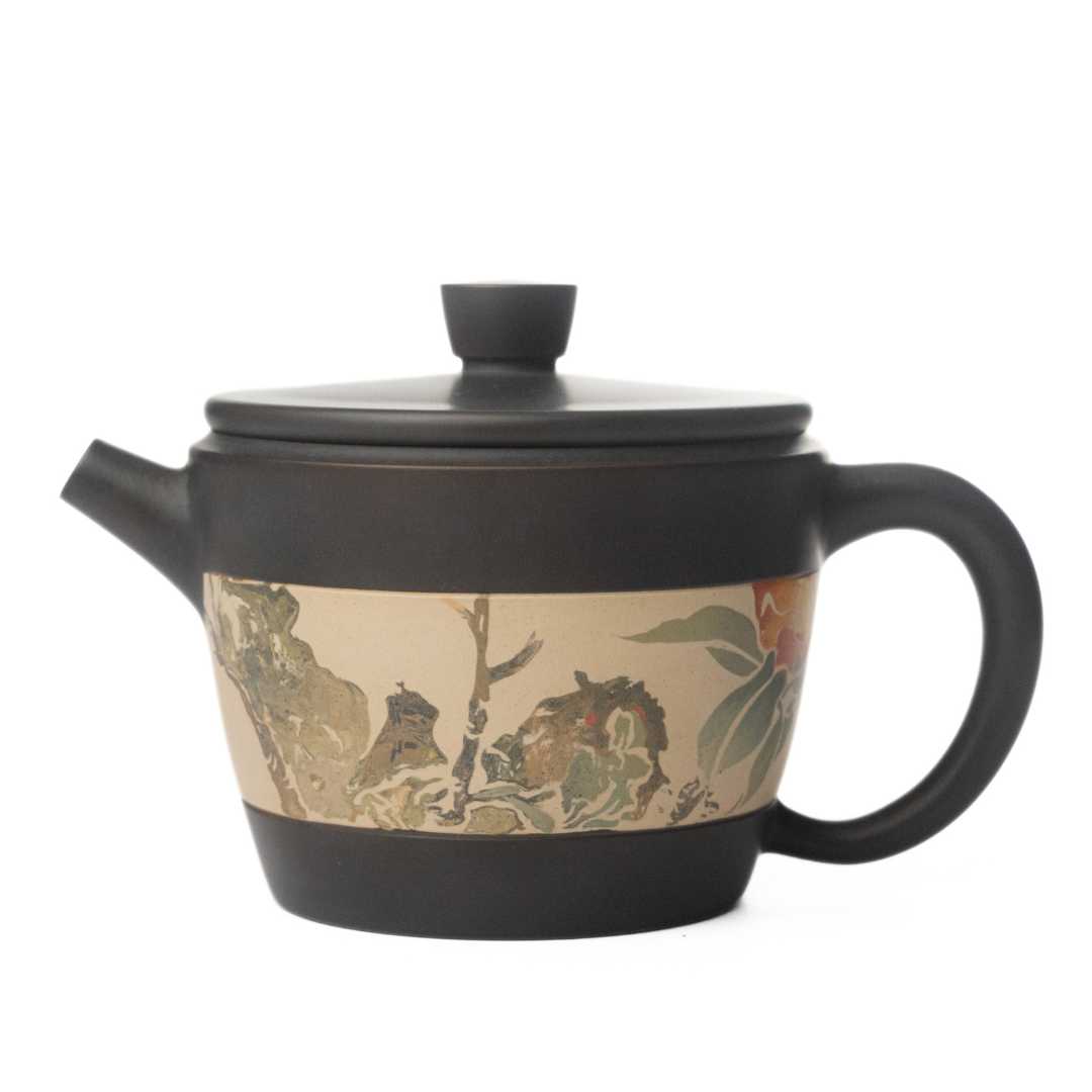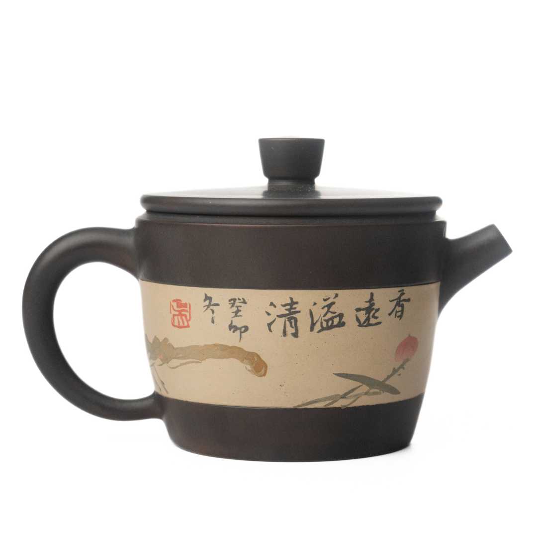 An elegant satisfying pot that checks all the boxes for a Jianshui black clay pot. A silky smooth exterior body, with beautiful clay inlay, smooth flow, and a beautiful seal from the lid to the body.